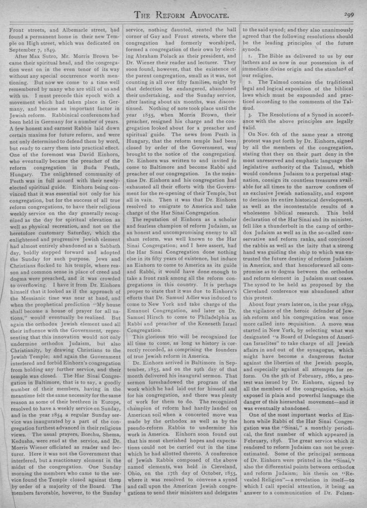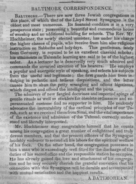 Lloyd St, aka Baltimore Hebrew Congregation, was founded in 1830. Har Sinai Congregation was founded in 1842 as a radical Reform congregation.