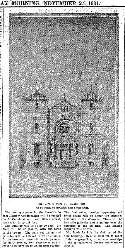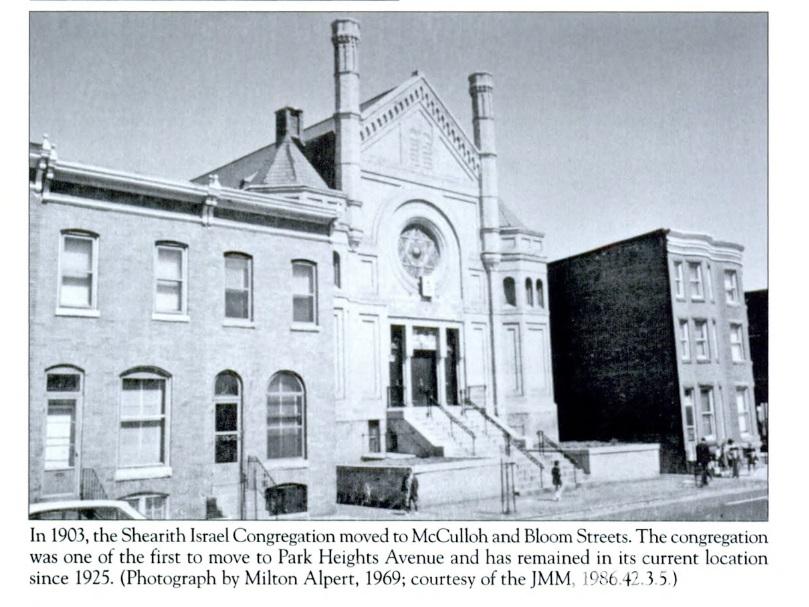 - From 1903-1958, Shearith Israel occupied a newly-erected, and still-standing building, at 2107 McCulloh Street, at Bloom Street. Dedication occurred on September 11, 1903.