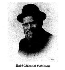 Rabbi Menachem Mendel Feldman (haKohen) was born Jan. 9, 1920 in Brooklyn, New York and studied at Yeshivas Tomchei Temimim and was a “Ben Bayis” of the previous Lubavitcher Rebbe, Rav Yosef Yitzchak, then went to Yeshivas Torah Vodaas. He assumed his first pulpit in Jacksonville, Florida. In 1958 he succeeded Rabbi Shimon Schwab as rabbi at Shearith Israel Congregation (1851/1879) when R’ Schwab moved to Washington Heights, NY. Rabbi Feldman also taught and was a rosh yeshivah of Talmudical Academy of Baltimore. Rabbi Feldman led Khal Ahavas Yisrael Tzemach Tzedek for 20+ years before emigrating to Australia in 2004. He was a chavrusa of Rabbi Moshe Heinemann of Agudath Israel of Baltimore (1981).